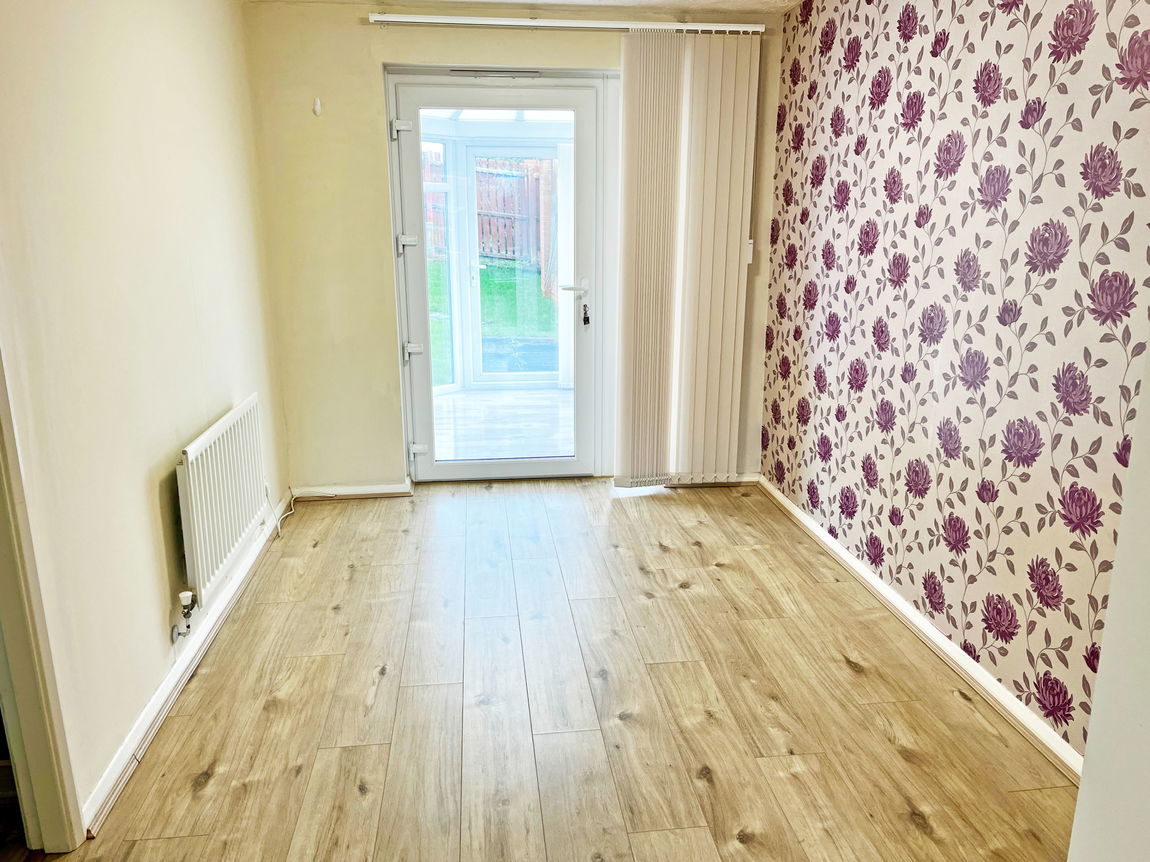 The dining room has a continuation of the wood effect flooring,, glazed door giving access to the conservatory.