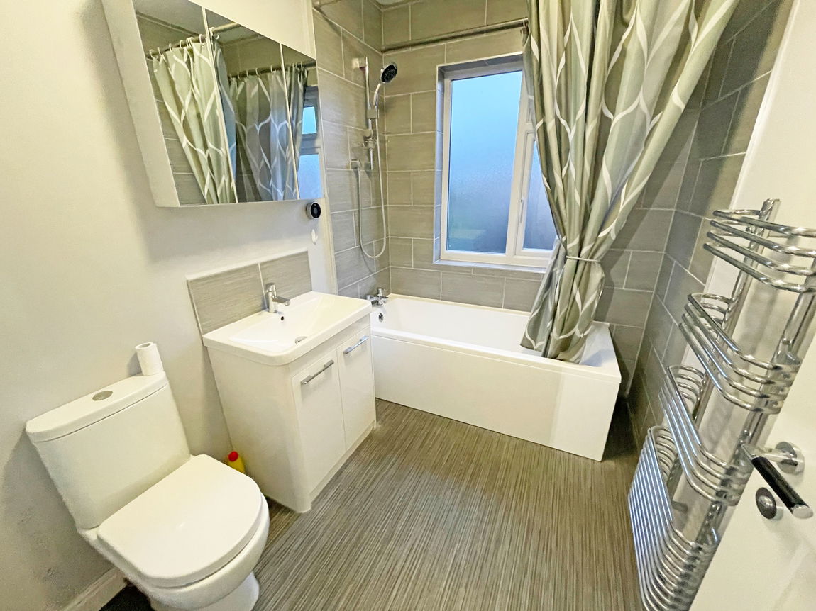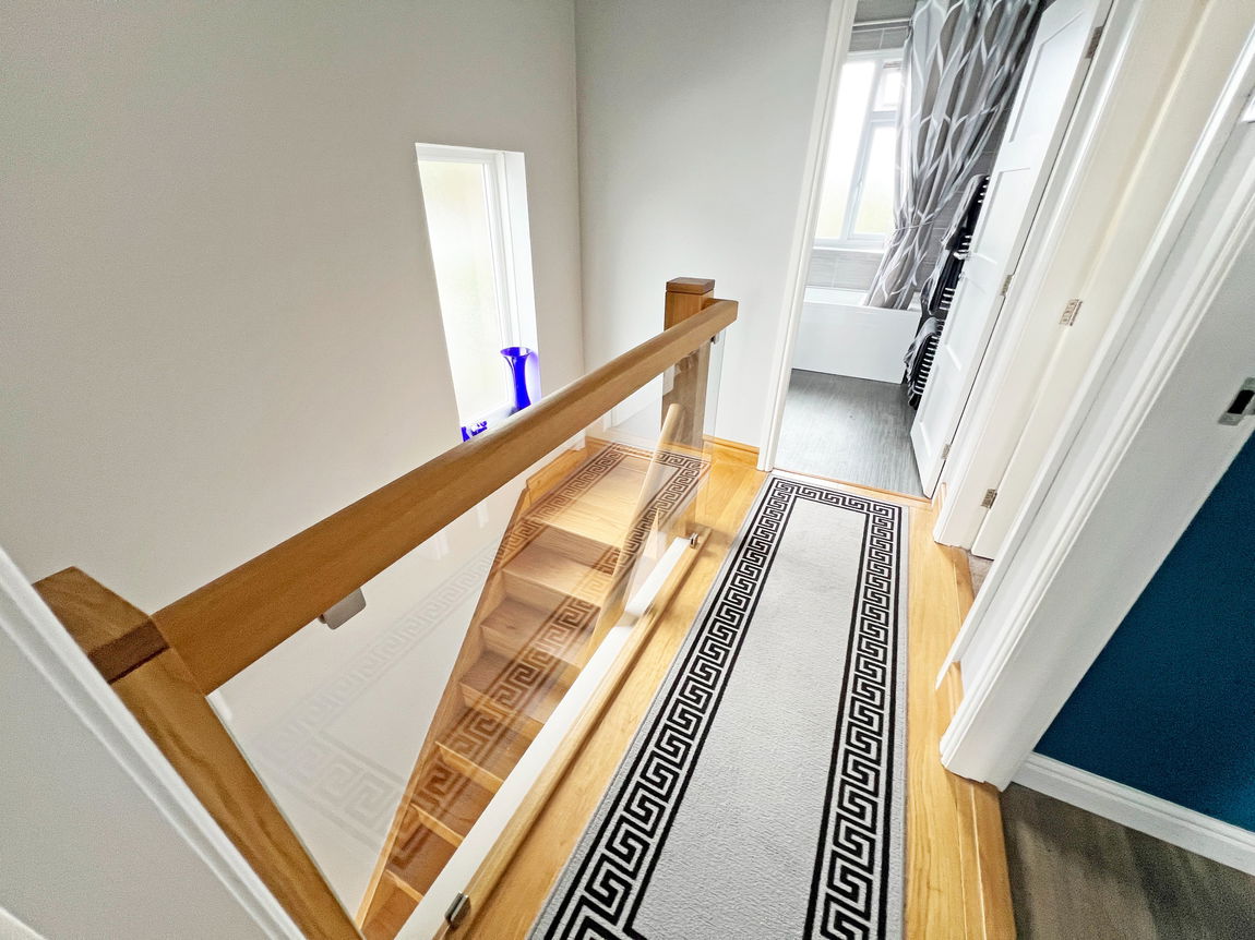 The first floor offers three bedrooms and a family bathroom comprising a panel bath with a shower over, a wash hand basin in a vanity unit and a low-level flush WC; complimentary tiling to the surrounds completes the look in this room.
