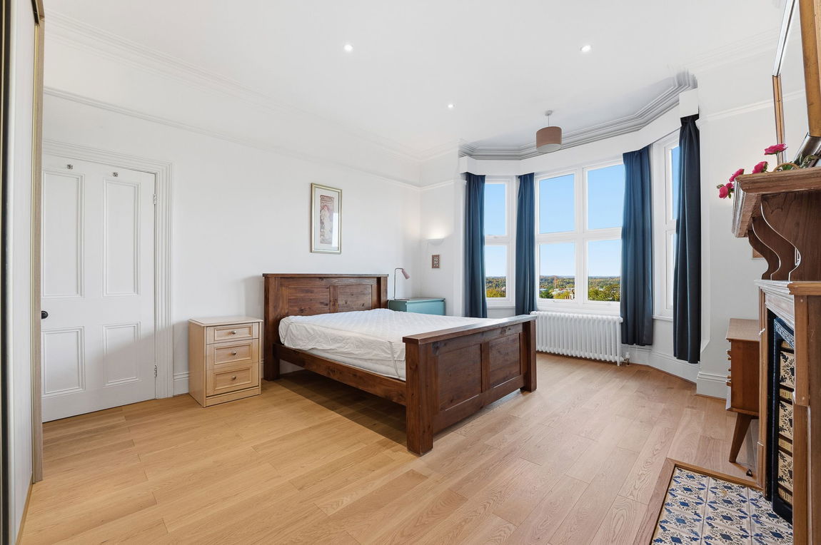 A particularly notable feature is the bay-windowed principal bedroom with its excellent range of fitted wardrobes and original fireplace that forms an attractive focal point to the room. Both this and the lounge benefit from a stunning, far-reaching view.