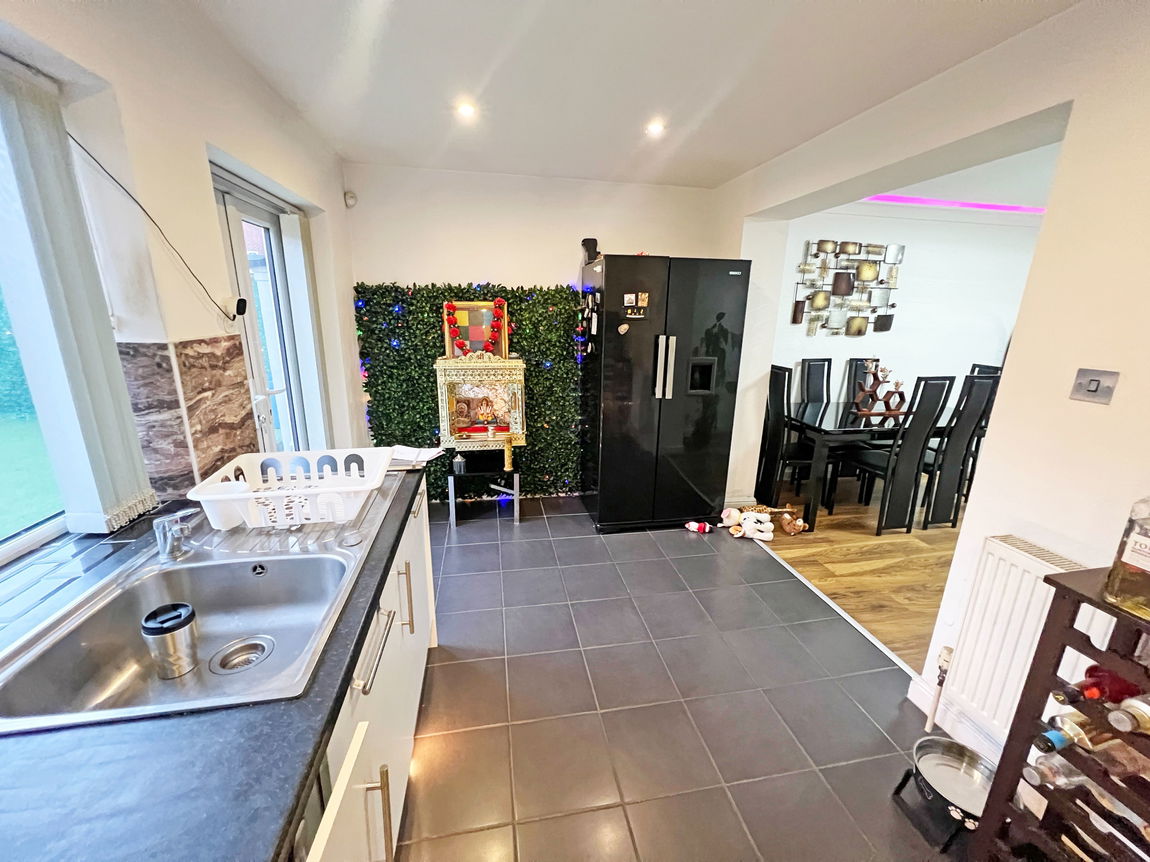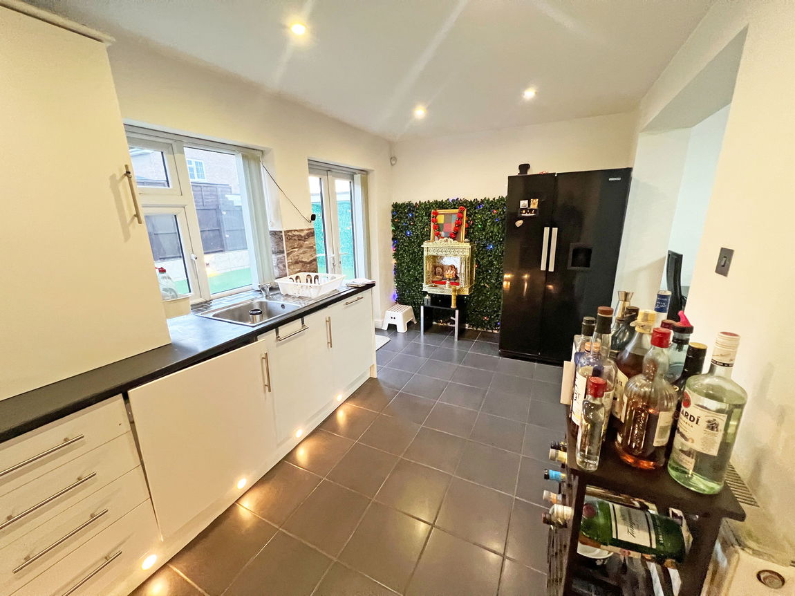 Upon entering the property, the hallway provides access to a ground-floor cloakroom and to the left, the main living area with a spiral staircase leading off to the first floor, a window to the front aspect and to the rear, access to the kitchen/diner. This room is fitted out with a range of wall and base units in an ultra-modern design and housing a number of built-in appliances, including an oven, hob with extractor over, as well as space and plumbing for several other appliances. To the side of the kitchen, there is space for a dining area, and there are patio doors out to the garden.
