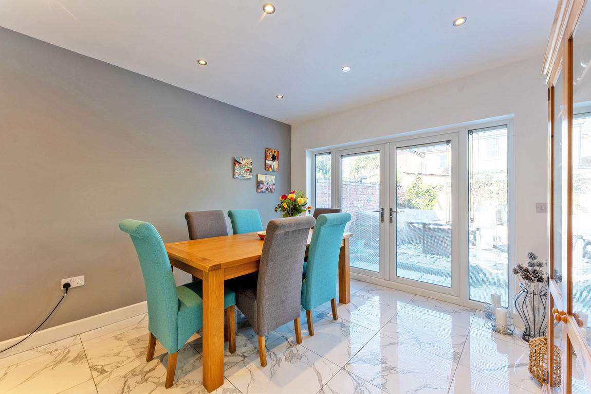The heart of the home is the impressive, recently refitted 25ft kitchen/diner. Meticulously designed, it blends sleek white gloss cabinets, quartz worktops and premium integrated appliances, all set atop porcelain floor tiles. From family meals to dinner parties, this space caters to every occasion in style.