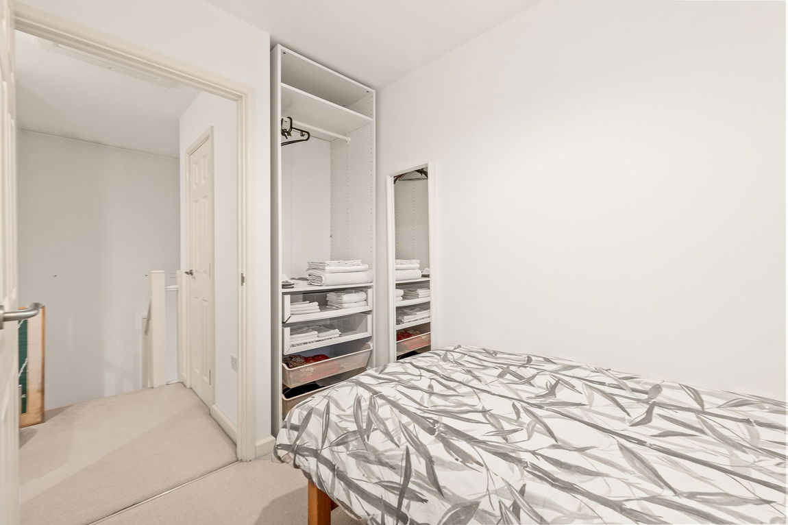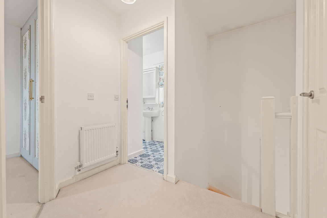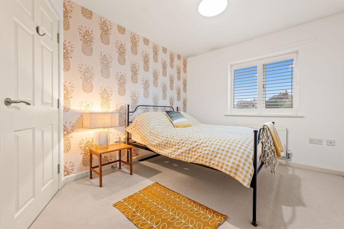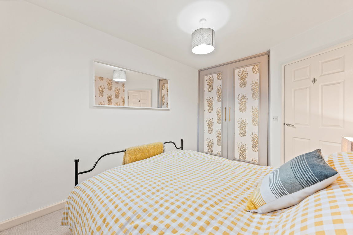Ascending to the first floor, a spacious landing welcomes you, offering a gateway to two well-appointed bedrooms and the family bathroom. The primary bedroom, a tranquil retreat, overlooks the front of the home, with its double-glazed window and built-in wardrobe adding a functional elegance. The second bedroom, a comfortable single space, also includes a window and ample room for additional furnishings.
