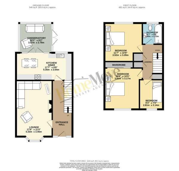 Accommodation comprises of a spacious entrance hall, generously proportioned lounge and kitchen/diner, and a conservatory overlooking and providing access to the rear garden. Up on the first floor there are three good-sized bedrooms and a bathroom. Storage is catered for here also with three useful cupboards.