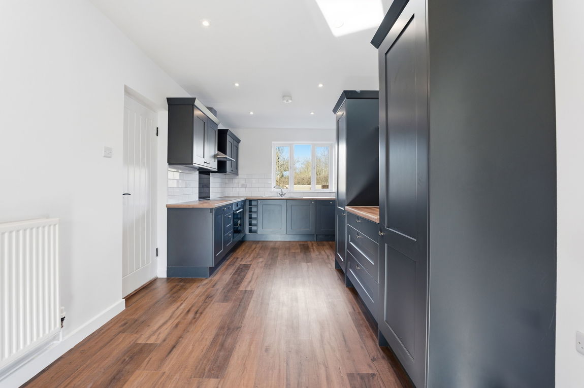 Extremely well-presented accommodation comprises of a spacious entrance hall, generously proportioned lounge with log burner, dining room (or second sitting room), kitchen/diner and a useful room offering versatility; ideal for storage/utility space or as a home office. The kitchen is fitted with a contemporary range of cupboards incorporating a built-in oven and induction hob with an extraction unit above it. There’s an integrated fridge/freezer, dishwasher and washing machine.