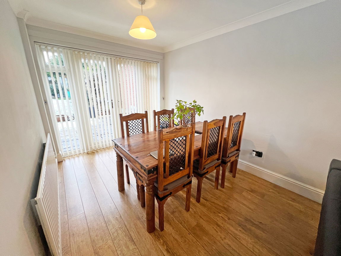 Upon entering the property via the addition front porch, the hallway provides access to the stairs and the first-floor landing, as well as the main living room to the immediate right; there is a storage cupboard to the left of the main entrance. The lounge/diner features a window to the front aspect, as well as patio doors to the rear that lead out to the garden. The room has wood-effect flooring throughout with a feature fireplace and surround as a focal point in the room. Light and airy throughout and neutrally decorated.
