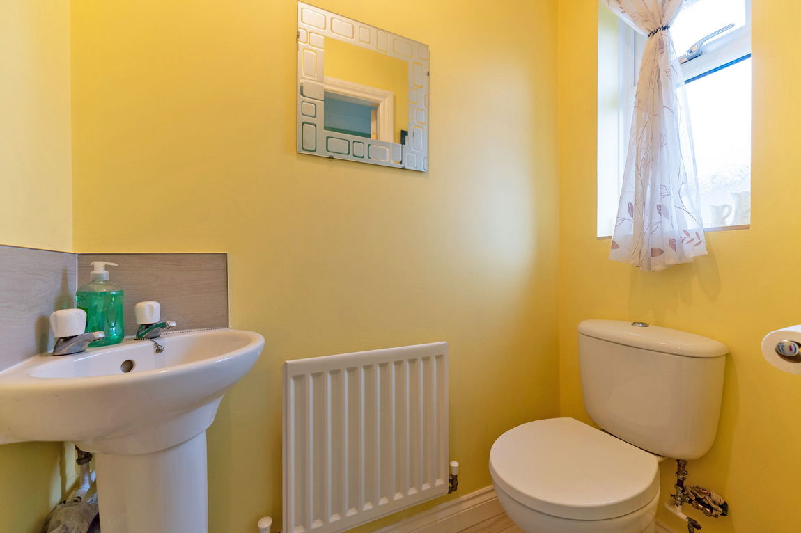 Upstairs, the first floor offers an airing cupboard, a stylish family bathroom with a side panel bath, vanity wash hand basin, and smart ceramic wall tiling, plus four generous double bedrooms. The master bedroom is complete with a sleek en-suite shower room, creating a perfect owners’ sanctuary.