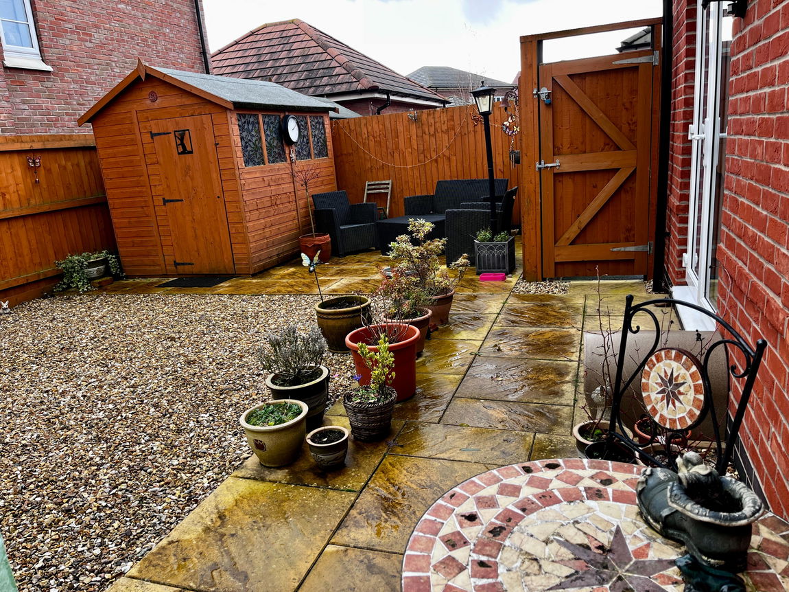 To the rear of the property there is a pleasant low maintenance garden with a patio seating area and gate giving access to the drive.
