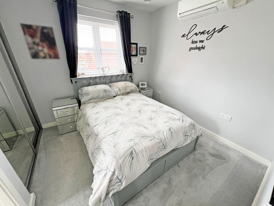 On entering the property with a storm porch over the main door, the hallway gives access to stairs and the first-floor landing as well as a ground-floor cloakroom. Access to the lounge/sitting room is to the right of the hallway. Neutrally decorated throughout, with a window to the front aspect as well as a box bay window to one wall, offering plenty of natural light. To the left of the hallway is the extended kitchen/diner and family room. The kitchen is fitted with a range of wall and base units, and includes built-in appliances such as an oven, hob, and extractor hood, as well as space and plumbing for several other appliances. A stunning feature of the kitchen is the open-plan living area/diner, which features patio doors leading out into the garden and a further skylight, providing additional light to this room.