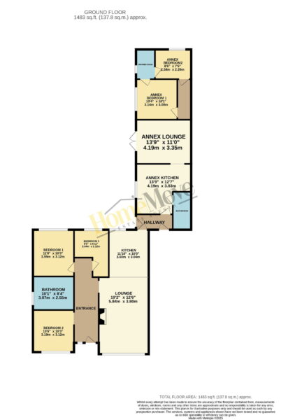 HomeMove Estate Agents By Carl Smith are delighted to offer for sale this beautiful, detached, extended bungalow, ideally suited for multi-generational living with a true annexe! This property is literally two bungalows in one. Comprising a good size three-bedroom bungalow and an attached two- bedroom bungalow. This property is located only a short distance from the bus stop which services the town, the local post office, doctors surgery, primary school, convenience store, tesco express, aldi, and two public houses with restaurants are close by offering an ideal location for all the family. Alternatively, the property could be used as one large dwelling.