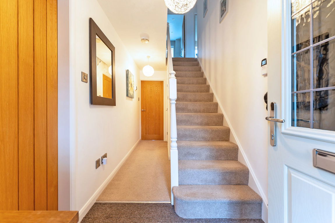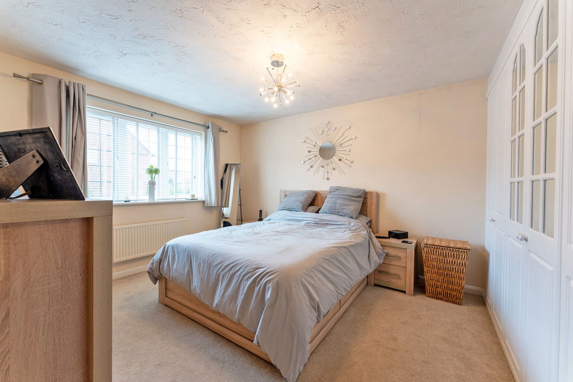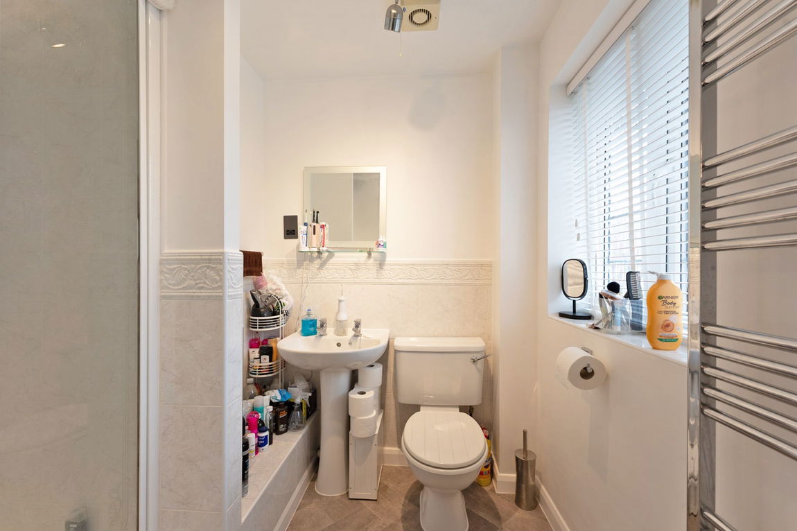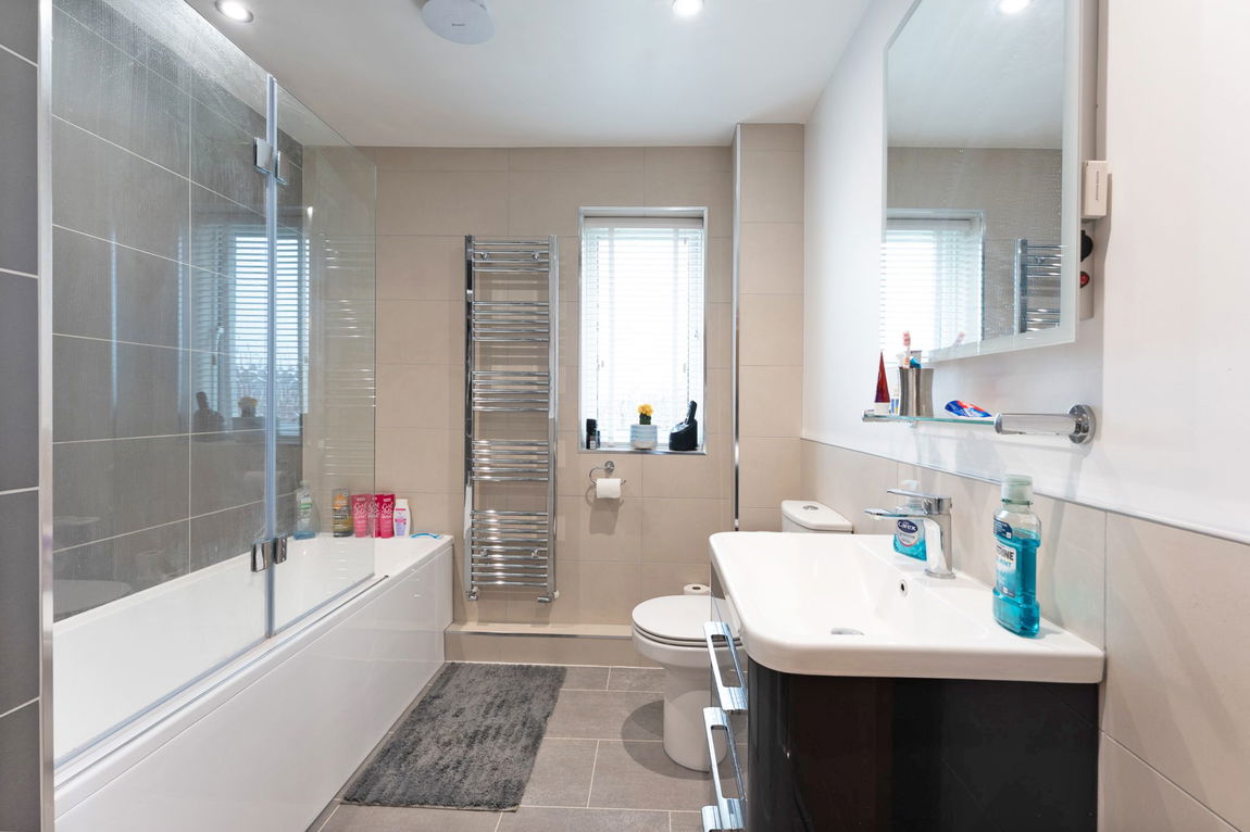 Upstairs, the property features four well-proportioned bedrooms, including three doubles and one comfortable single. All bedrooms benefit from bespoke fitted wardrobes, while the principal bedroom enjoys an en suite shower room. The family bathroom has been thoughtfully refitted, effortlessly combining style and utility.