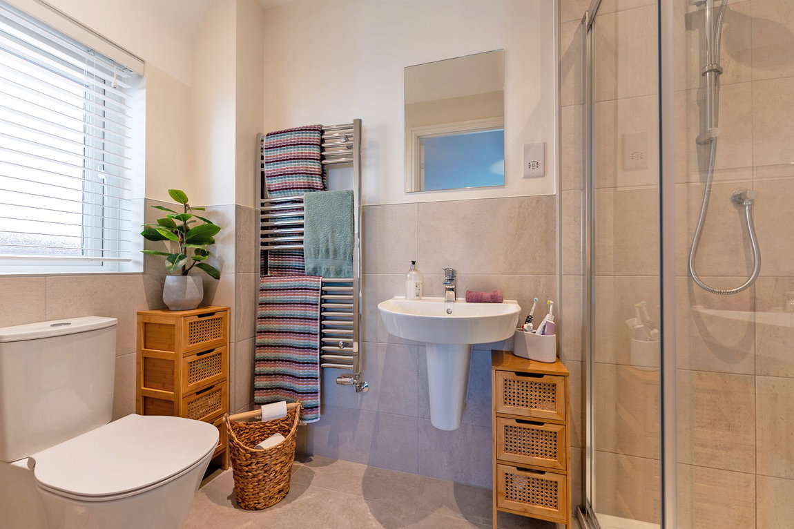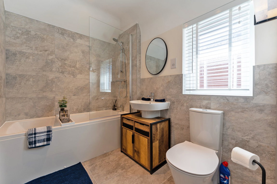 Upstairs, a spacious landing leads to four generously sized double bedrooms, each offering ample space and natural light. The main bedroom is a peaceful retreat, featuring ample wardrobe space and a modern en-suite shower room for added privacy and convenience. A further contemporary family bathroom, fitted with a stylish three-piece suite, serves the remaining three bedrooms, ensuring comfort for the entire family. Every room reflects the property's immaculate condition and modern design aesthetic, ready for immediate enjoyment.