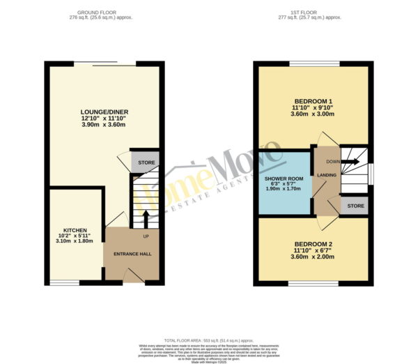 The accommodation comprises a hallway, lounge/diner, kitchen, two bedrooms and a family bathroom.