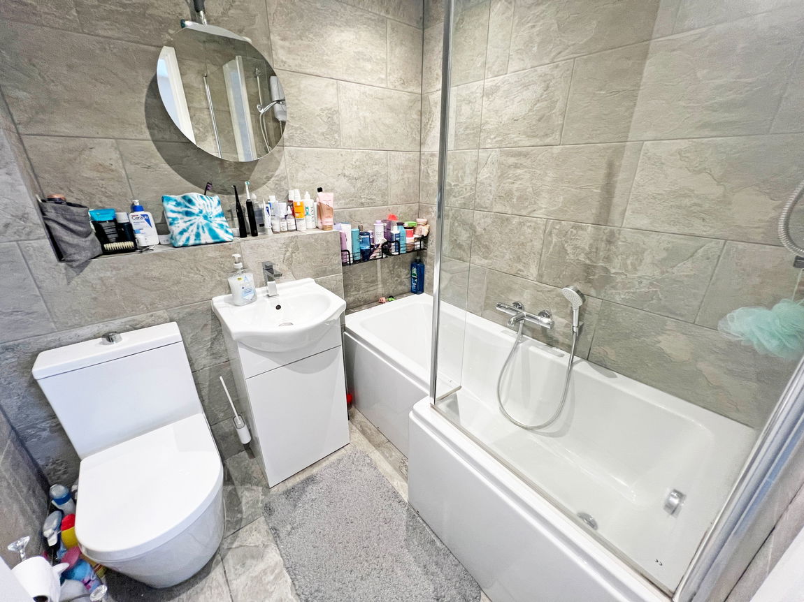 On the first floor, there are two bedrooms, as well as the family bathroom, which comprises a panel bath with a shower over, a wash hand basin, and a low-level flush WC.