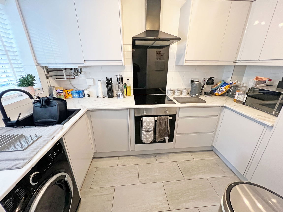Upon entering the property, you have access to a modern kitchen, which is fitted out with a range of wall and base units and features a built-in oven with a hob and extractor over. There is also space and plumbing for several other appliances. Moving further back into the property is the main living room, come diner, all neutrally decorated and with French patio doors out to the garden.
