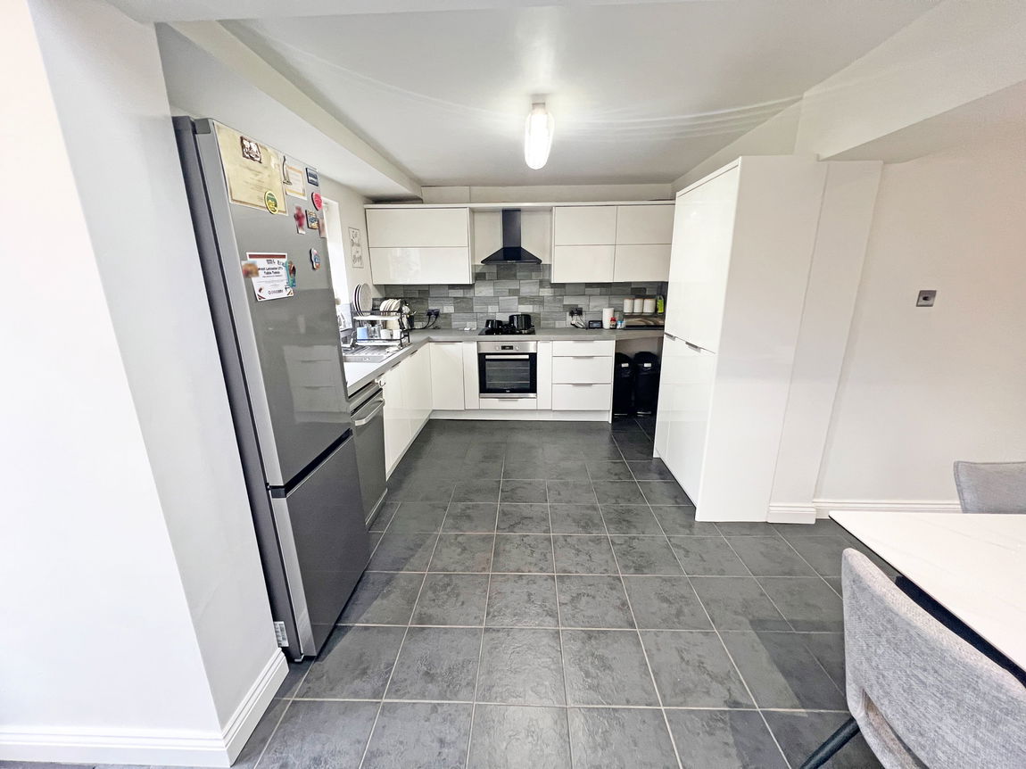 Also, to the rear and to the left is the impressive kitchen diner, where the kitchen is fitted with a range of wall and base units, housing several appliances, including an oven, hob, and an extractor hood. There is also space and plumbing for other appliances.