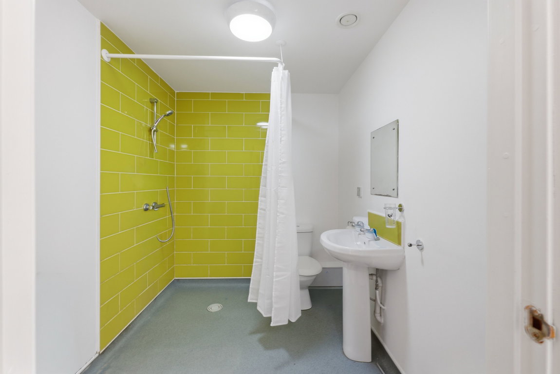 The bathroom is designed for simplicity and functionality, featuring a wash hand basin and a WC. This no-frills approach ensures that the essentials are covered while maximising available space.