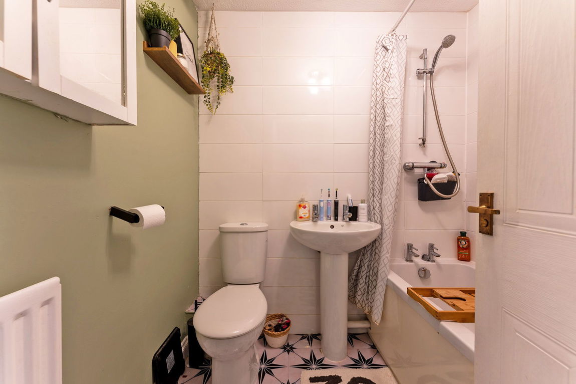 Upstairs features Two generous double bedrooms. Bedroom One is tastefully finished with feature panelling and neutral tones, while Bedroom Two overlooks the front of the property and offers excellent proportions and built in storage. The family bathroom has been tastefully finished and is fitted with a white suite and shower over bath.