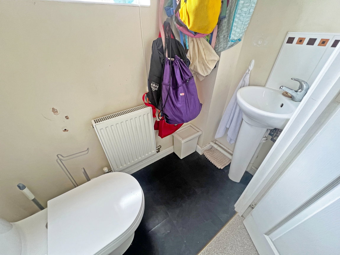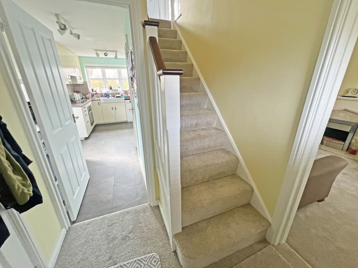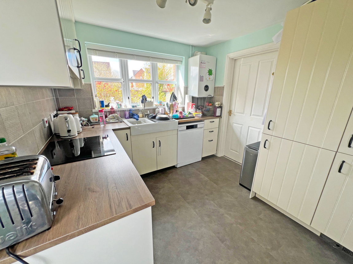 Upon entering the property, the hallway provides access to the stairs to the first-floor landing as well as a ground-floor cloakroom to the left. Immediately to the right is the through lounge/diner, which features a box bay window overlooking the front aspect and with patio doors to the rear giving access to the garden. The kitchen is also located off the hallway to the rear of the property, and with it being L-shaped, offers wall and base units with several built-in appliances, including an oven, hob with extractor over and fridge/freezer, as well as the utility side of the kitchen having space and plumbing for other appliances.