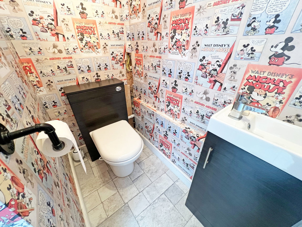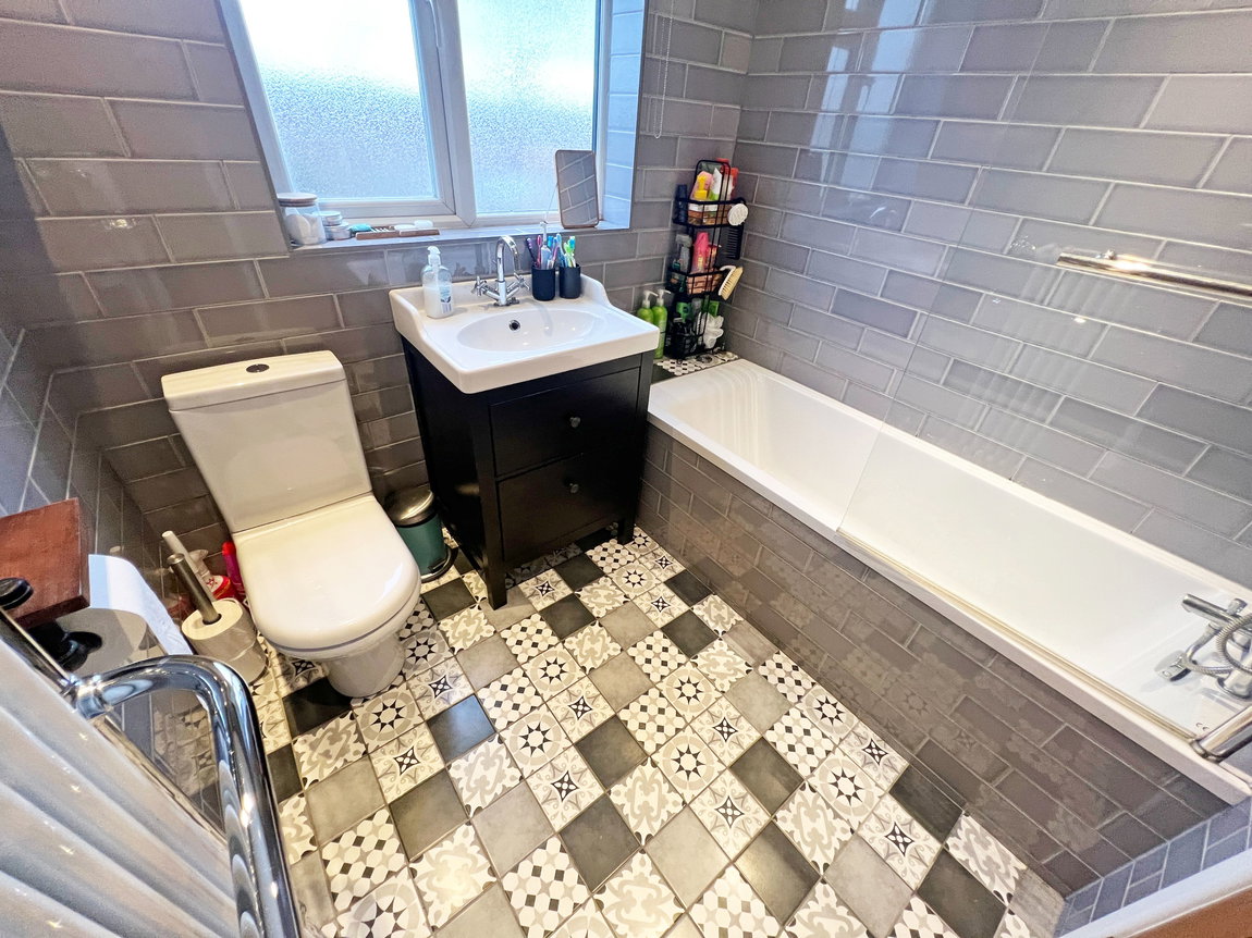 The first-floor accommodation includes three bedrooms, and a family bathroom which comprises a panel bath with a shower screen and shower over the bath, wash hand basin, and low-level flush WC, all with complementary tiling to the walls and floor.