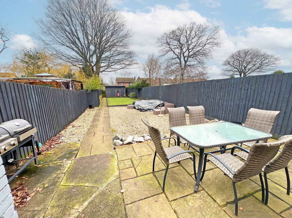Outside to the rear is a generally low-maintenance garden given the size, with a slabbed patio area, leading to a gravel bed and on to an artificial lawn area and a larger-than-expected shed at the very rear of the garden. To the front, there is hard standing for a couple of vehicles.
