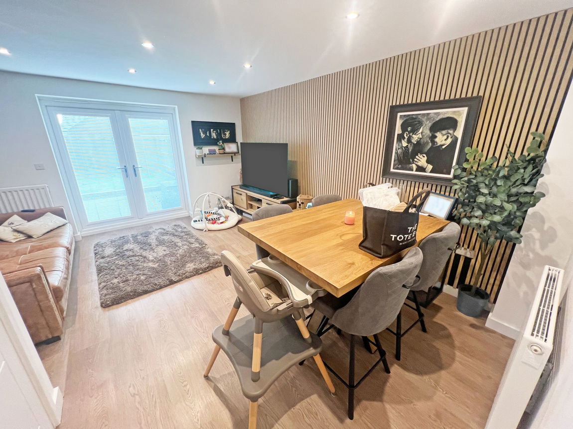 Upon entering the property, the hallway provides access to the stairs and the first-floor landing, as well as a cloakroom to the left on entering the property. To the right is the kitchen, which is fitted out with a range of wall and base units and includes a built-in oven, hob with extractor over, as well as there being space and plumbing for other appliances. To the rear of the property is a full-width lounge/diner that has patio doors out to the garden, and there is an understairs cupboard.
