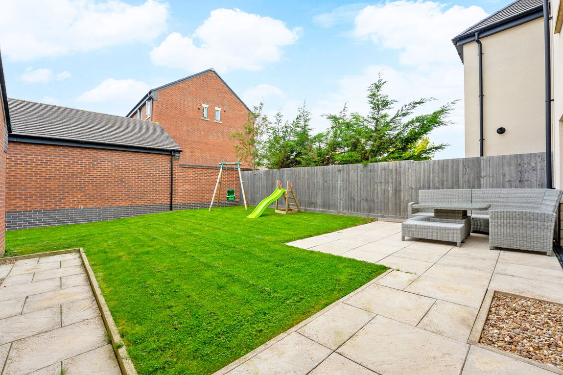 Outside, the property is enhanced by a neatly maintained front garden, private driveway parking for two vehicles and a single detached garage, accessed via a pedestrian door from the rear garden. The rear garden itself has been expertly landscaped, offering a lush lawn, paved patio seating area and secure fencing - ideal for relaxing and entertaining alike.