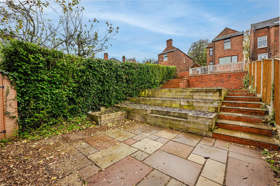Externally, the property offers a detached garage, with both off-street and street parking available. The enclosed tiered garden, featuring patio areas and artificial grass, presents a potential opportunity for new buyers to optimize the available space.