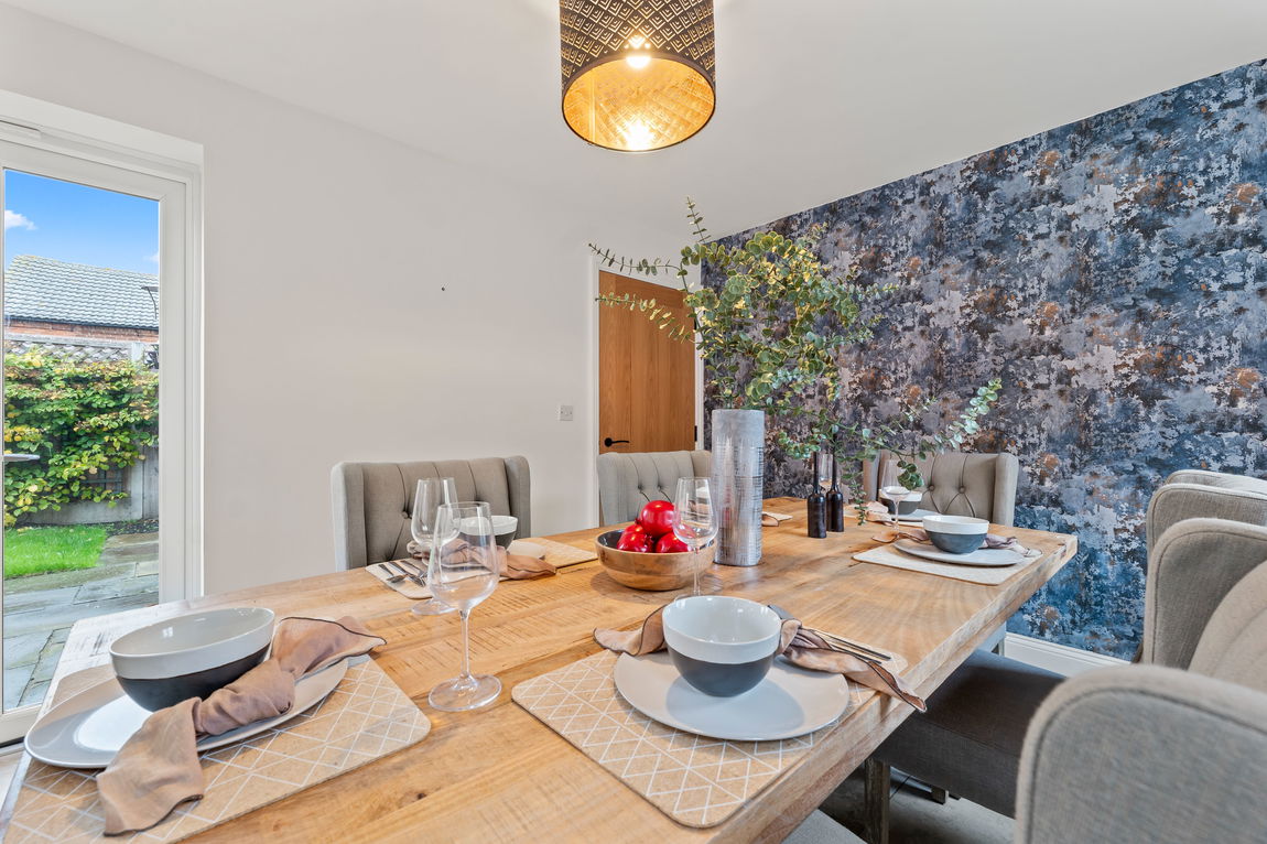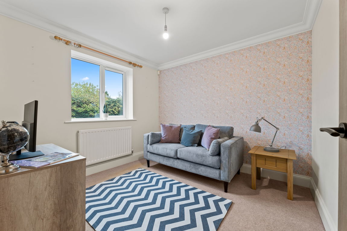 The front door opens into the entrance hall where you get an immediate indication of the high standard of presentation that prevails throughout the home. A staircase rises to the first floor and there are doors into the lounge, playroom, kitchen/diner and a useful ground floor cloakroom with toilet and wash basin. The lounge extends to an impressive 17’10 (5.4m) and has a window overlooking the front and bi-fold doors that open to the rear garden. A log-burner recessed into the chimney forms an attractive focal point to the room. The second reception room is currently used as a playroom but would, equally, make a great study or snug. The open concept kitchen/dining room extends to 16’10 (5.14m), has been the subject of much improvement and is fitted with a range of quality cabinetry with an integrated fridge and dishwasher. Double doors open to the garden and space for dining furniture make this an ideal part of the home in which to cook, dine and relax with family and friends. The utility room has plumbing for a washing machine, additional storage and sink unit. A former garage has been converted to a fantastic ‘work from home space’. With direct access off the driveway at the front of the property, this part of the home is self-contained and therefore considered perfect for those that work from, or run a business, from home.