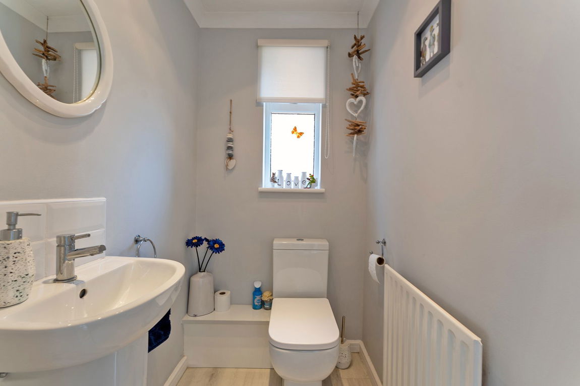 Step inside and be welcomed by the inviting hallway which is flooded with natural daylight, off the hallway you will discover well-proportioned rooms, including two welcoming reception rooms that offer flexible living spaces for relaxation and entertaining. The kitchen is in immaculate condition and benefits from a range of wall & base units with solid wood work surfaces, some built in appliances and feature ceramic sink. There is an additional separate utility room with space for fridge/feezer, space & plumbing for washing machine & tumble drier. A refitted WC finished with modern white suite completes the accommodation to the ground floor.