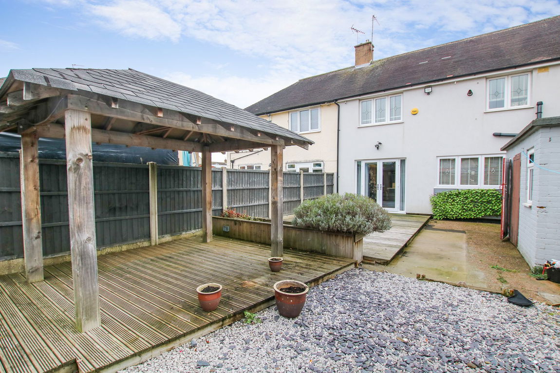 Externally, the property has off-road parking for a couple of cars and a low-maintenance rear garden with a couple of outhouses and decking area covered by a pergola.