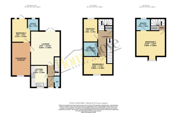 The accommodation comprises a hallway, cloakroom, lounge, kitchen, converted garage room, ground floor bedroom (4) with ensuite, three further bedrooms over the first and second floors, an ensuite to the master bedroom and a family bathroom.