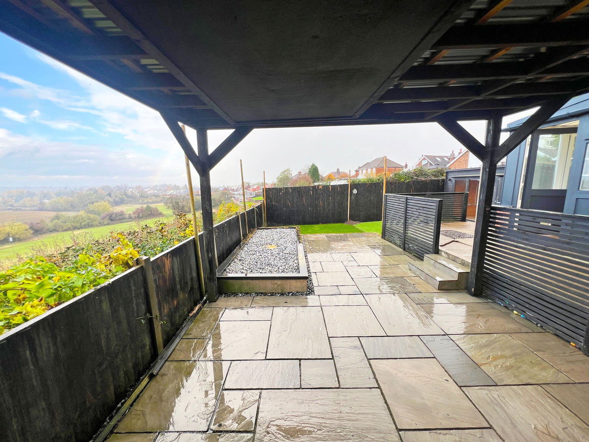 Outside, to the rear, is a low-maintenance garden, divided between a slabbed patio, artificial grass, and a decking area that offers stunning views of the adjacent countryside. To the front, there is off-street parking for a couple of vehicles as well as access to a garage.