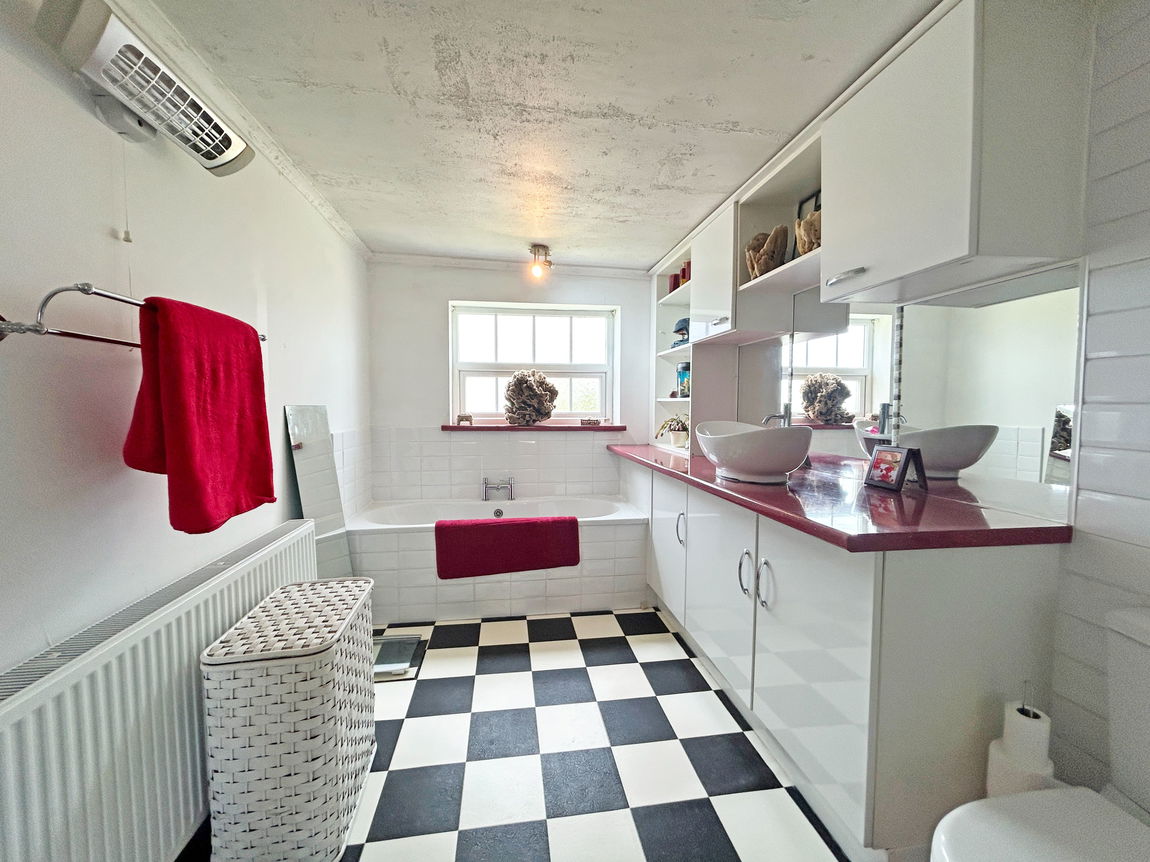 Bathroom - Having upvc window to the side elevation, radiator, dual flush wc, wash hand basin with vanity cupboard, centre fill bath, jacuzzi shower.