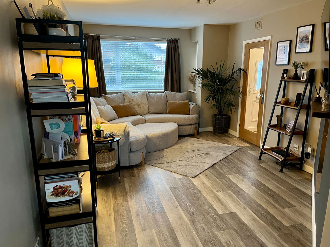 The cosy lounge has a window overlooking the front elevation wood effect vinyl flooring and opening leading to the kitchen/diner.