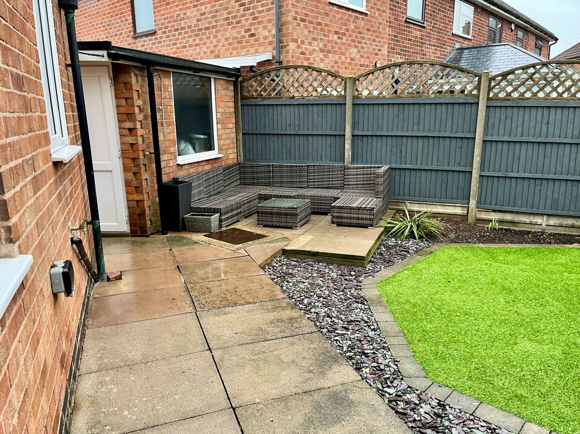 To the rear of the property there is a well-maintained garden, with a shaped artificial lawn, mature shrubs, a pleasant seating area and a gate giving access to the front. To the side of the property there is a useful paved area, ideal for storage of bins etc. The detached garage has an electric roller door, power and light and a personal door leading to the rear garden.