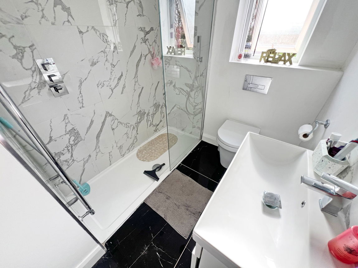 The first-floor landing provides three bedrooms, and there is a family bathroom comprising a walk-in shower, wash hand basin and low-level flush WC.
