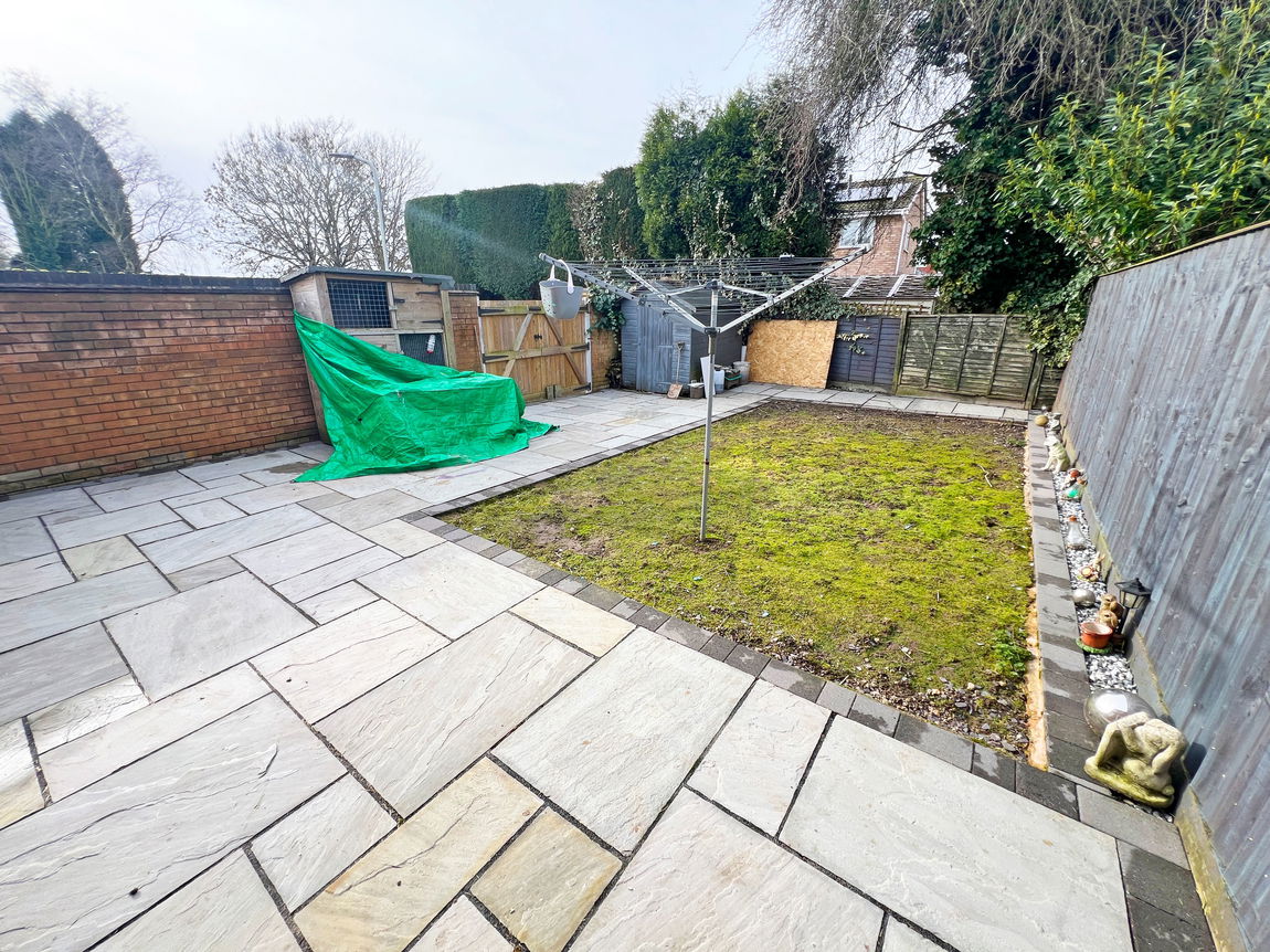 Outside to the rear is a slabbed patio, lawn, shed and double-gated access to the side, where there is off street parking available. To the front, there is a small lawned area with footpath.