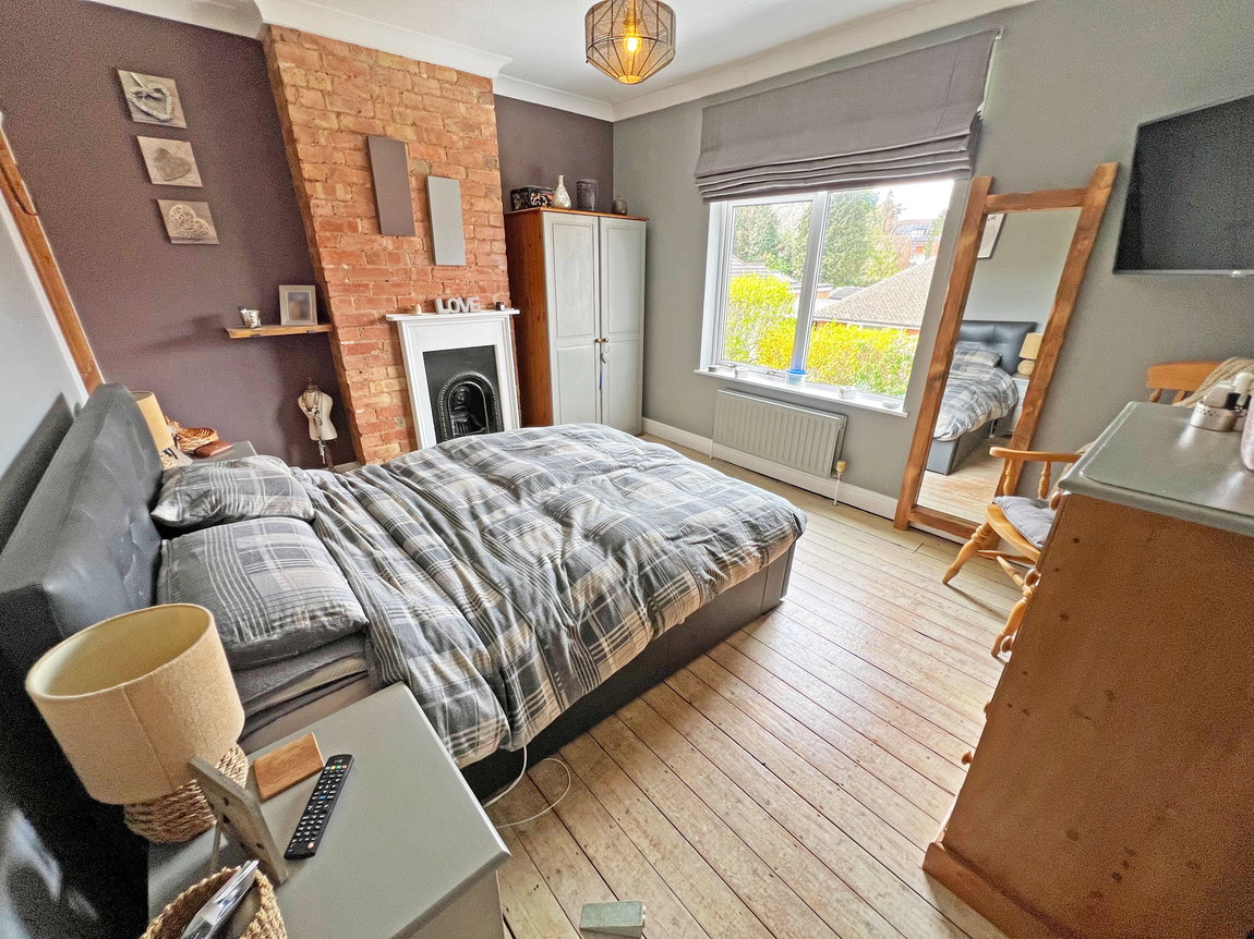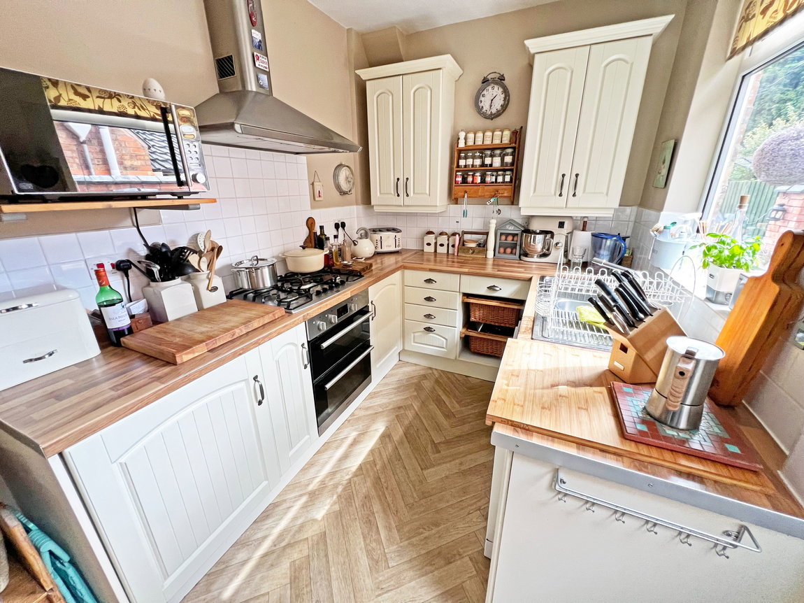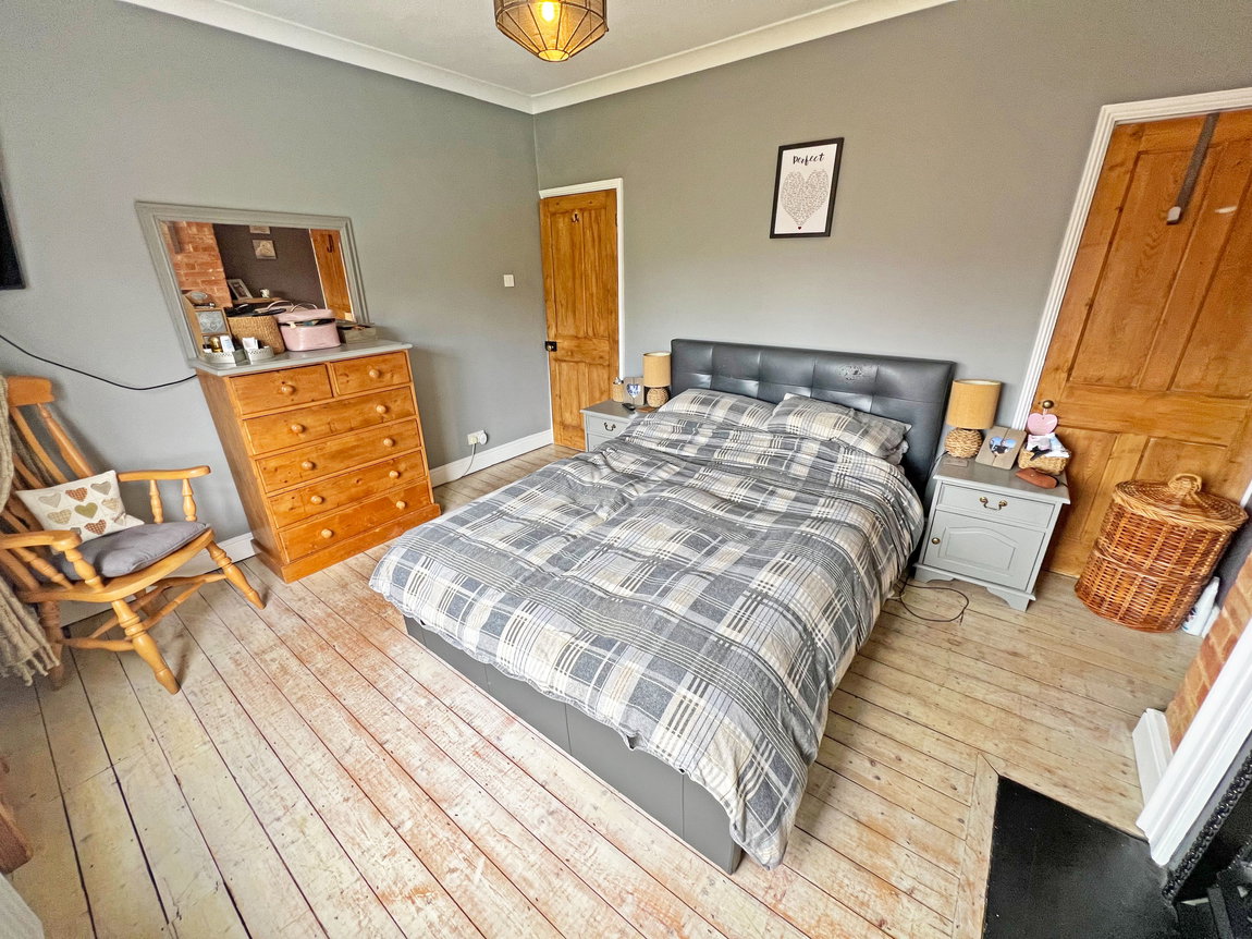 On entering the property, you are greeted by the front reception room, currently, the main living area with a window to the front aspect, wood effect flooring, storage to the alcoves either side of the chimney breast and including a log burner.