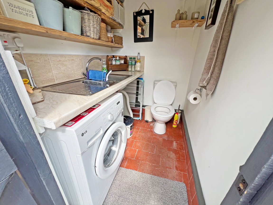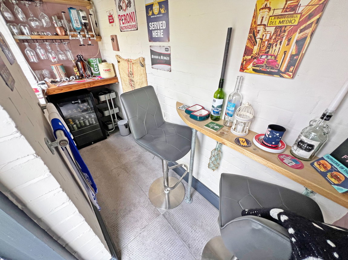 Outside, to the rear of the property, is a low-maintenance garden, with a paved patio leading to the lawned area of the garden with mature borders. The garden also provides access to a utility area having a sink and plumbing for a washing machine/tumble dryer and a ground-floor WC, as well as a further storage shed. To the very rear of the property, the owners have converted a brick shed to an entertainment area with its very own bar and seating area.