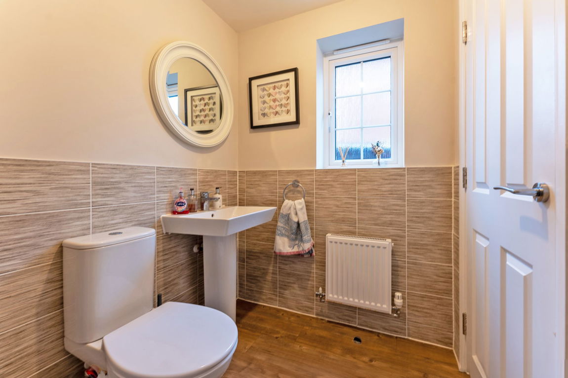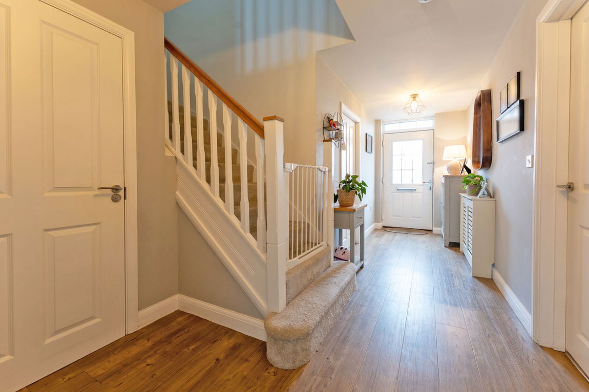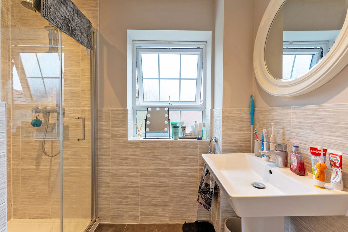 Upstairs, the property features four spacious double bedrooms, providing comfort and privacy for all the family. The principal bedroom benefits from its own modern en-suite shower room, while the remaining bedrooms are served by a stylish four-piece family bathroom, both finished with contemporary fittings and fixtures.