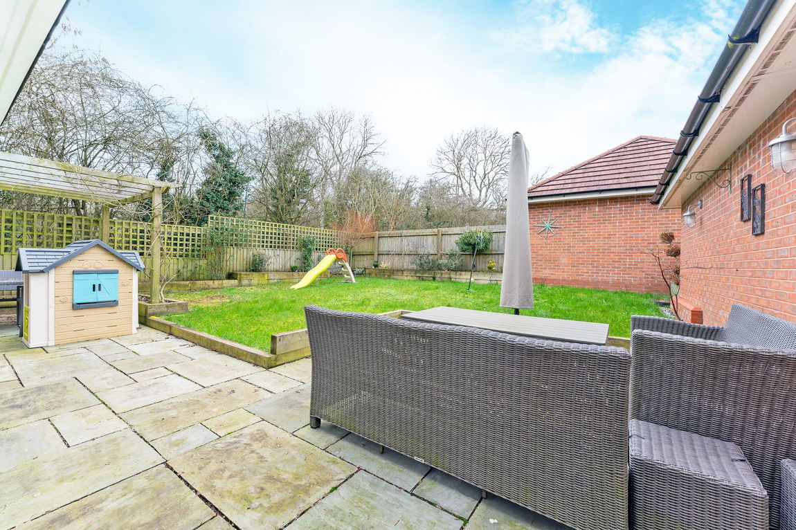 Outside, the property boasts a well-maintained garden and patio area, perfect for al fresco dining or simply unwinding outdoors. Ample off-road parking is available, including a single garage and driveway accommodating two cars.