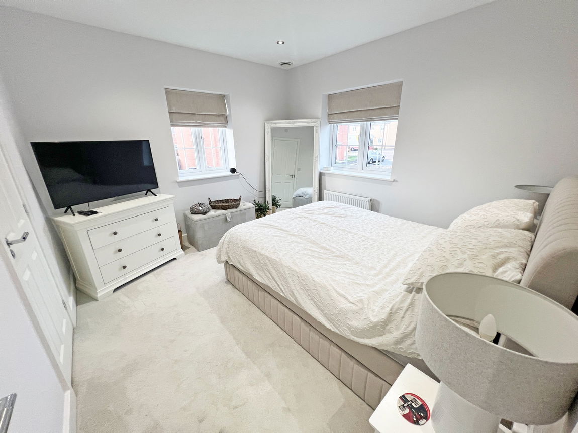 Upon entering the property through the front door, you enter the hallway, which immediately gives you an indication of the quality this home offers: light, bright and decorated to a neutral design that is replicated throughout the property. There is access to a ground-floor cloakroom, and to the left of the hallway, the lounge, or main living room, with windows on two sides, letting in plenty of natural daylight. The kitchen, which is to the rear of the property, is the full width of the house and is fitted with a range of wall and base units and has several built-in appliances, including a double oven, gas hob with extractor over, and a fridge/freezer, as well as further space and plumbing for other appliances.