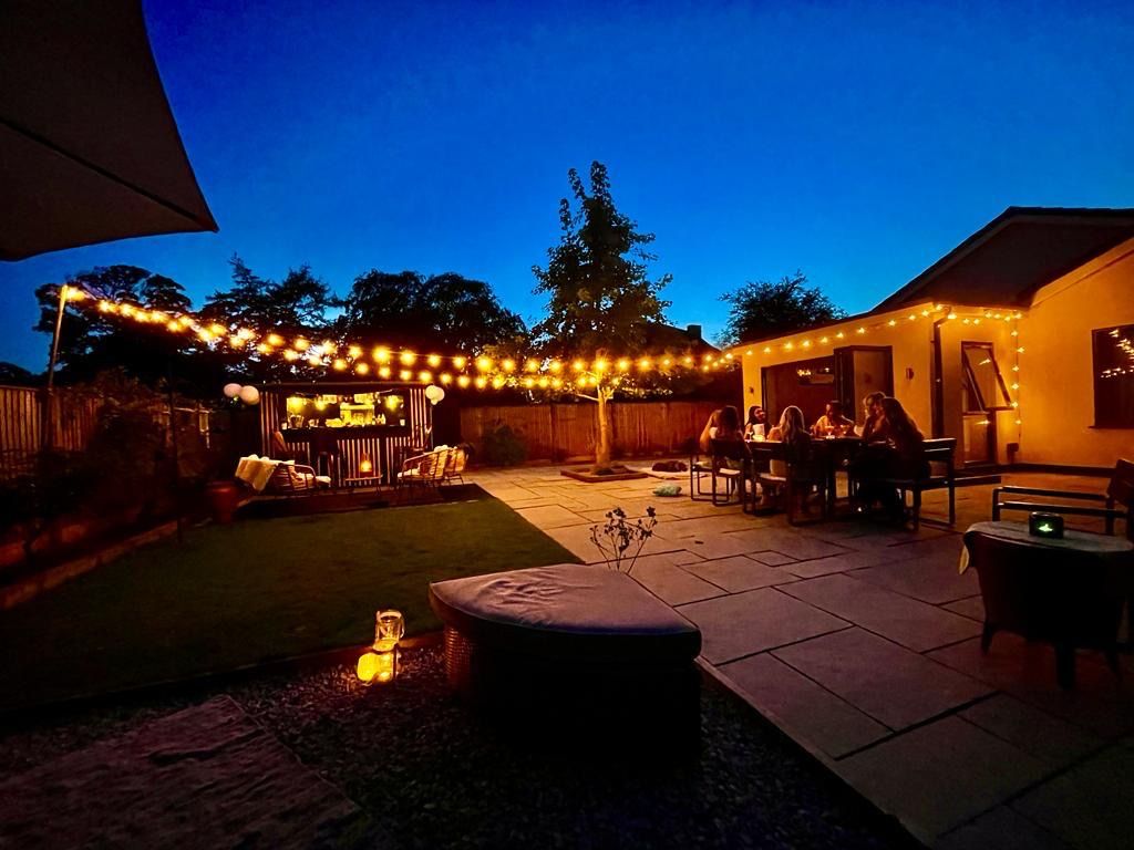 - Lovely South-Facing Rear Garden With Patio, Lawn, Bar & Pergoda & Gated Driveway With Off-Road Parking For Four